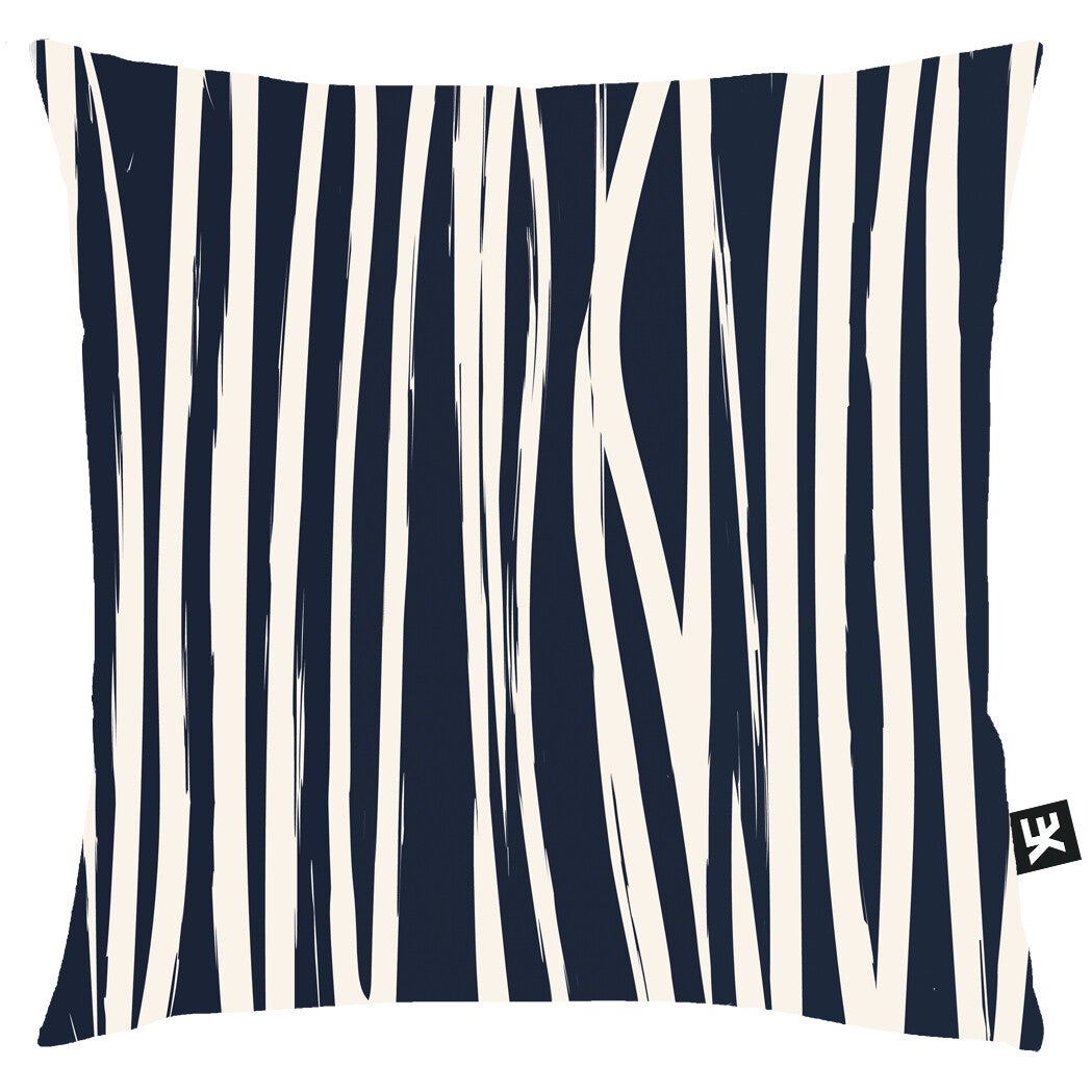 ACEMO is een geprint sierkussen in blauw en ecru.