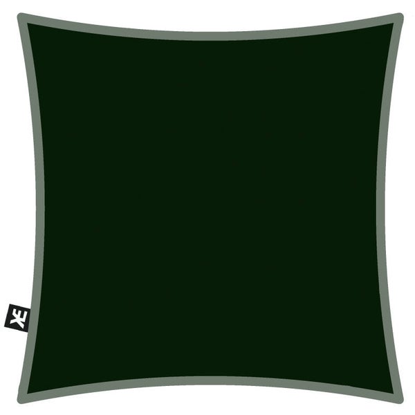 De achterzijde van het kussen uitgevoerd in de kleur donkergroen , rondom is het kussen afgewerkt met een zachtgroen sierpaspel.