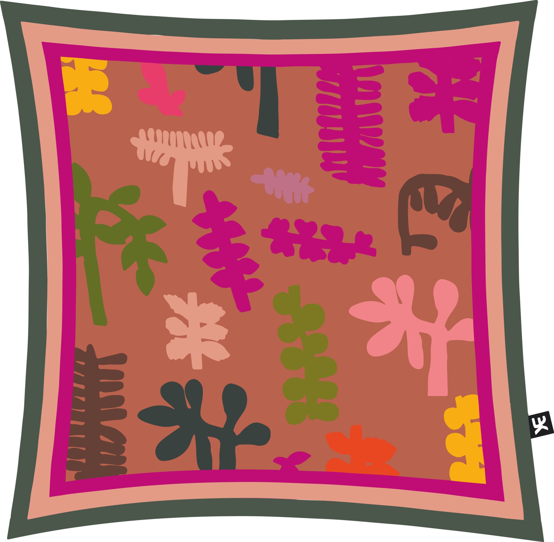 DEGO is een geprint kussen in multicolor kleuren met een onderscheidende voor-en achterkant.