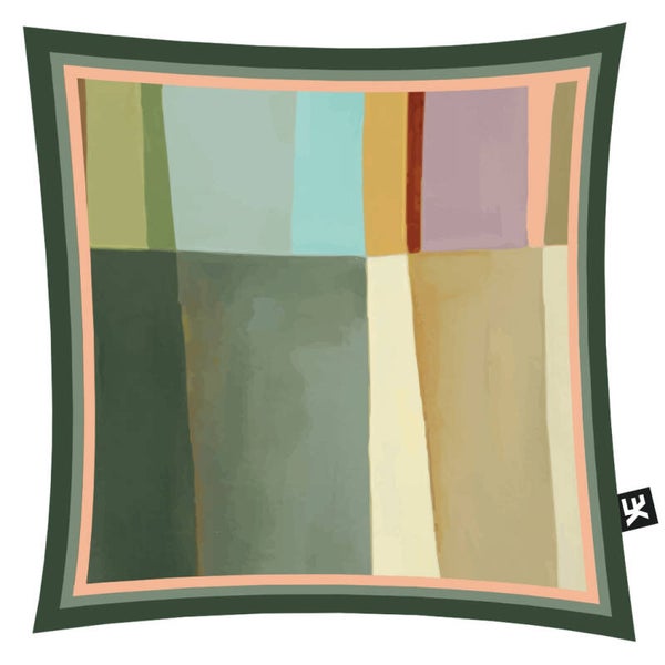DRONERO is een geprint kussen in multicolor kleuren met een onderscheidende voor-en achterkant.