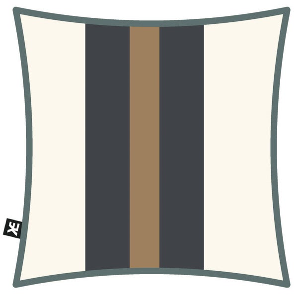 DRAPIA is een geprint kussen in multicolor kleuren met een onderscheidende voor-en achterkant.De randen zijn afgewerkt met een zgn. paspel , een koord in een contrasterende kleur.