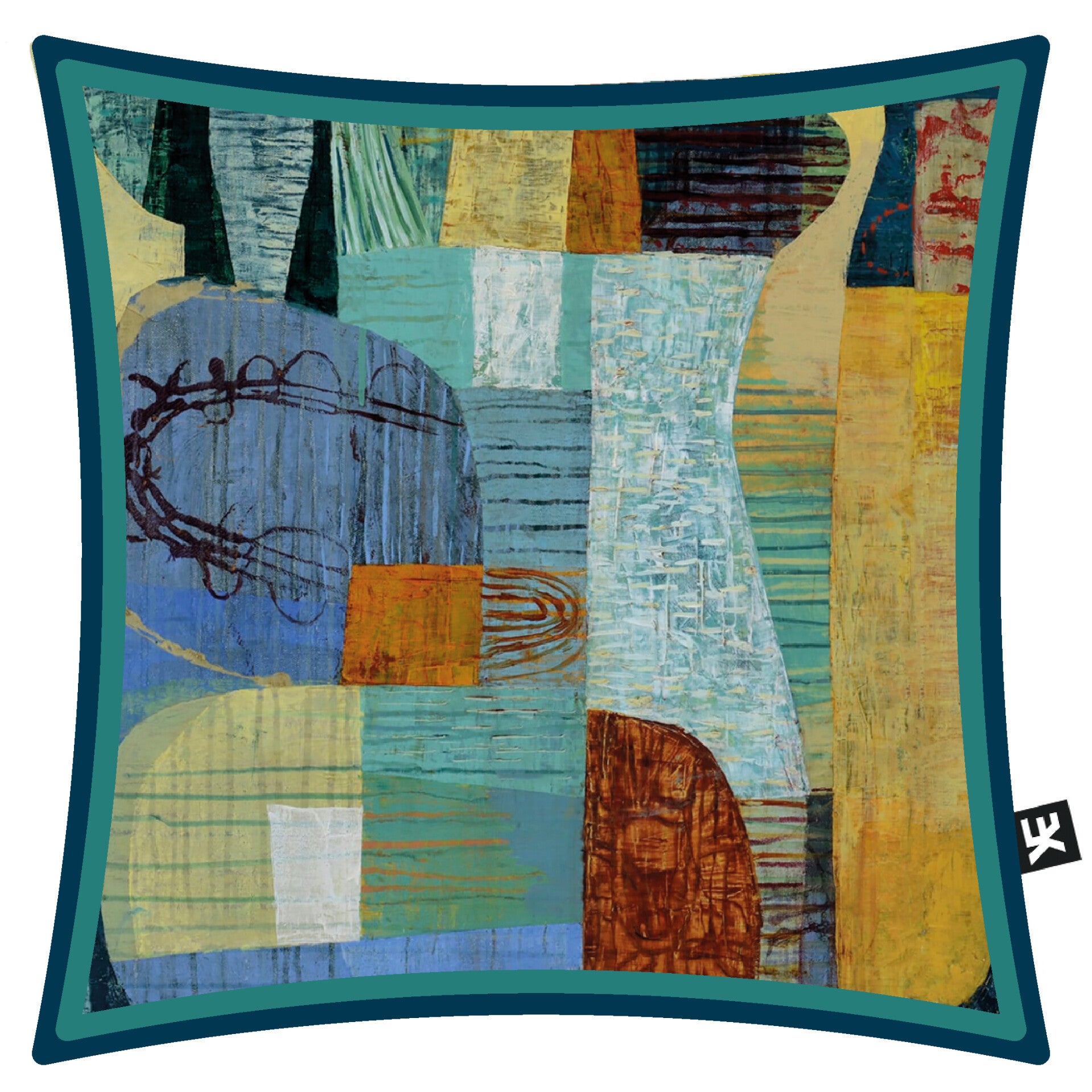 EMARESE is een geprint kussen in multicolor kleuren met een onderscheidende voor-en achterkant.