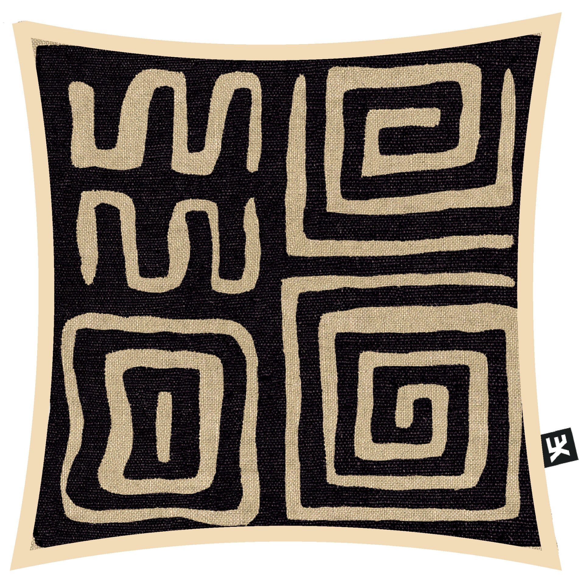 TERRI is een geprint Kuba kussen in de kleuren beige en zwart.
