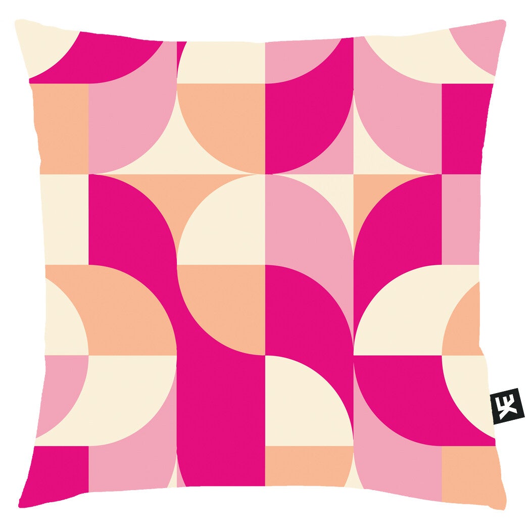 ALCORCON is een geprint sierkussen in rose en beige kleuren.