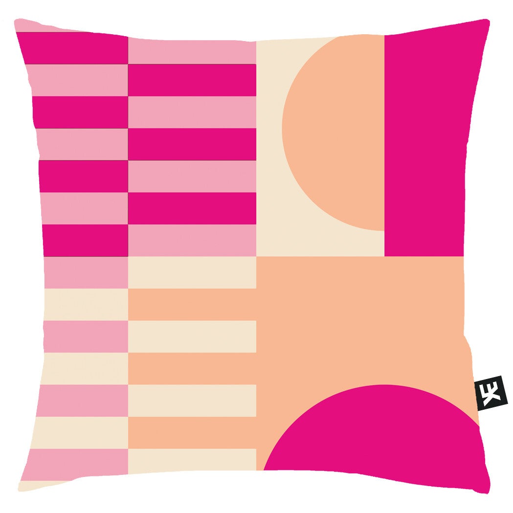 ALCORCON is een geprint sierkussen in rose en beige kleuren.