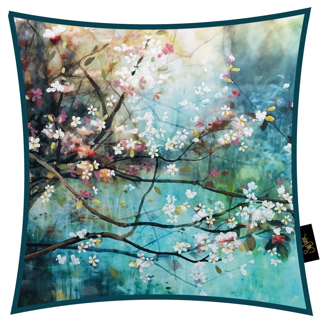 De achterzijde van het kussen is uitgevoerd in een uni kleur , passend bij het kunstwerk