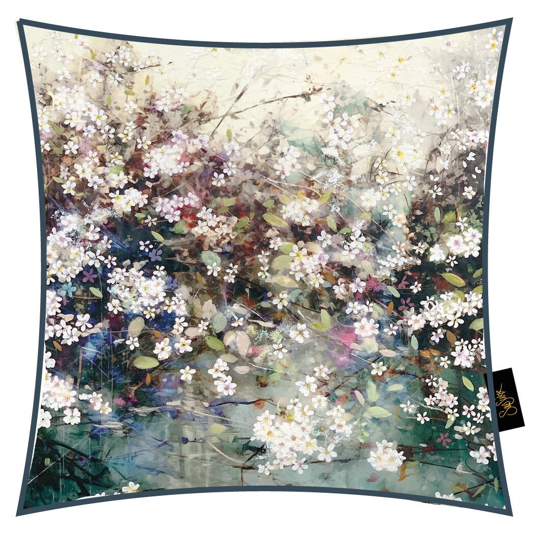 De achterzijde van het kussen is uitgevoerd in een uni kleur , passend bij het kunstwerk